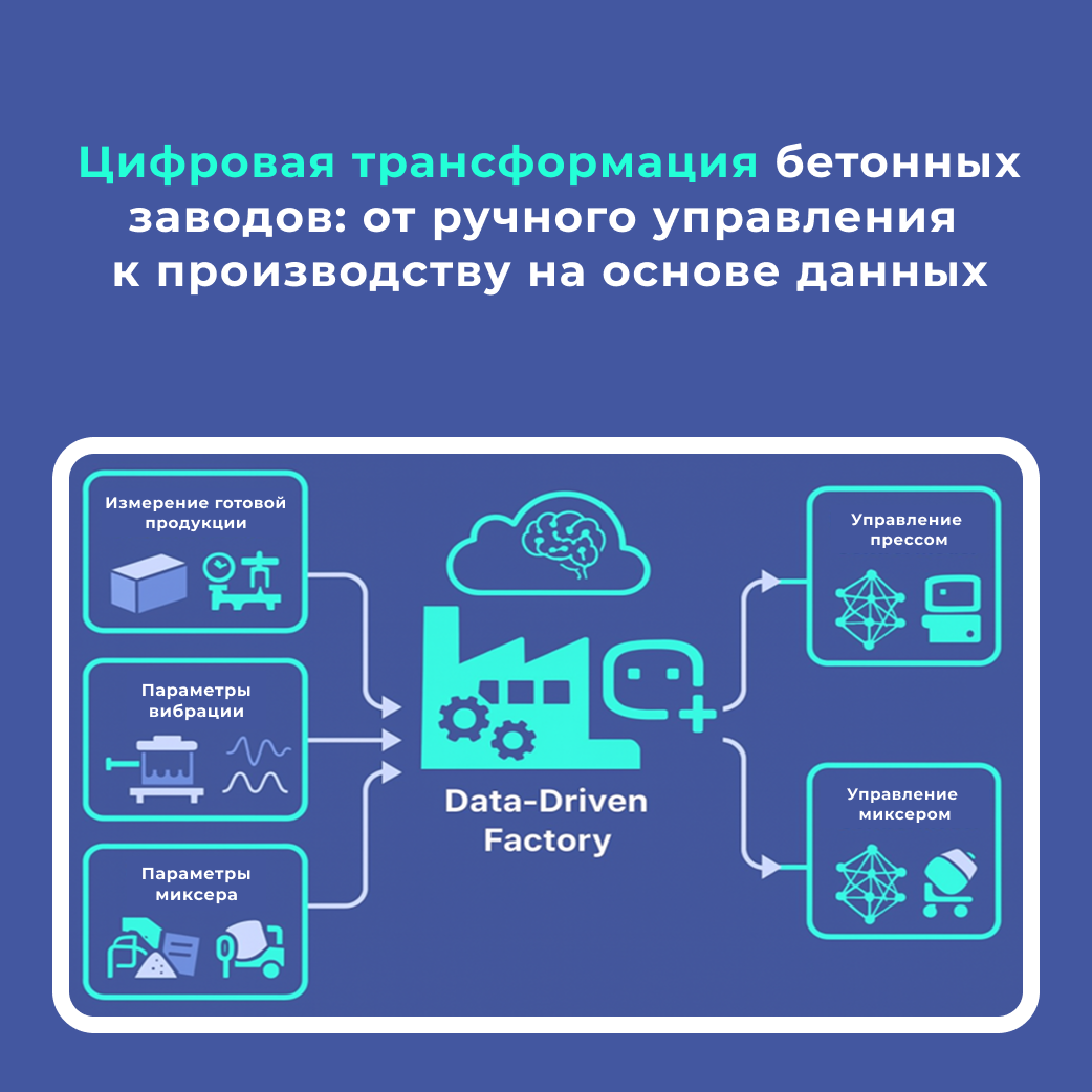 Современный подход в Индустрии 4.0 основывается на том, что машины работают автономно, используя данные в реальном времени, полученные с производственной линии. Однако в производстве бетонных тротуарных и стеновых блоков до сих пор преобладает традиционный подход, в котором операторы реагируют на события, полагаясь в основном на опыт и органы чувств.