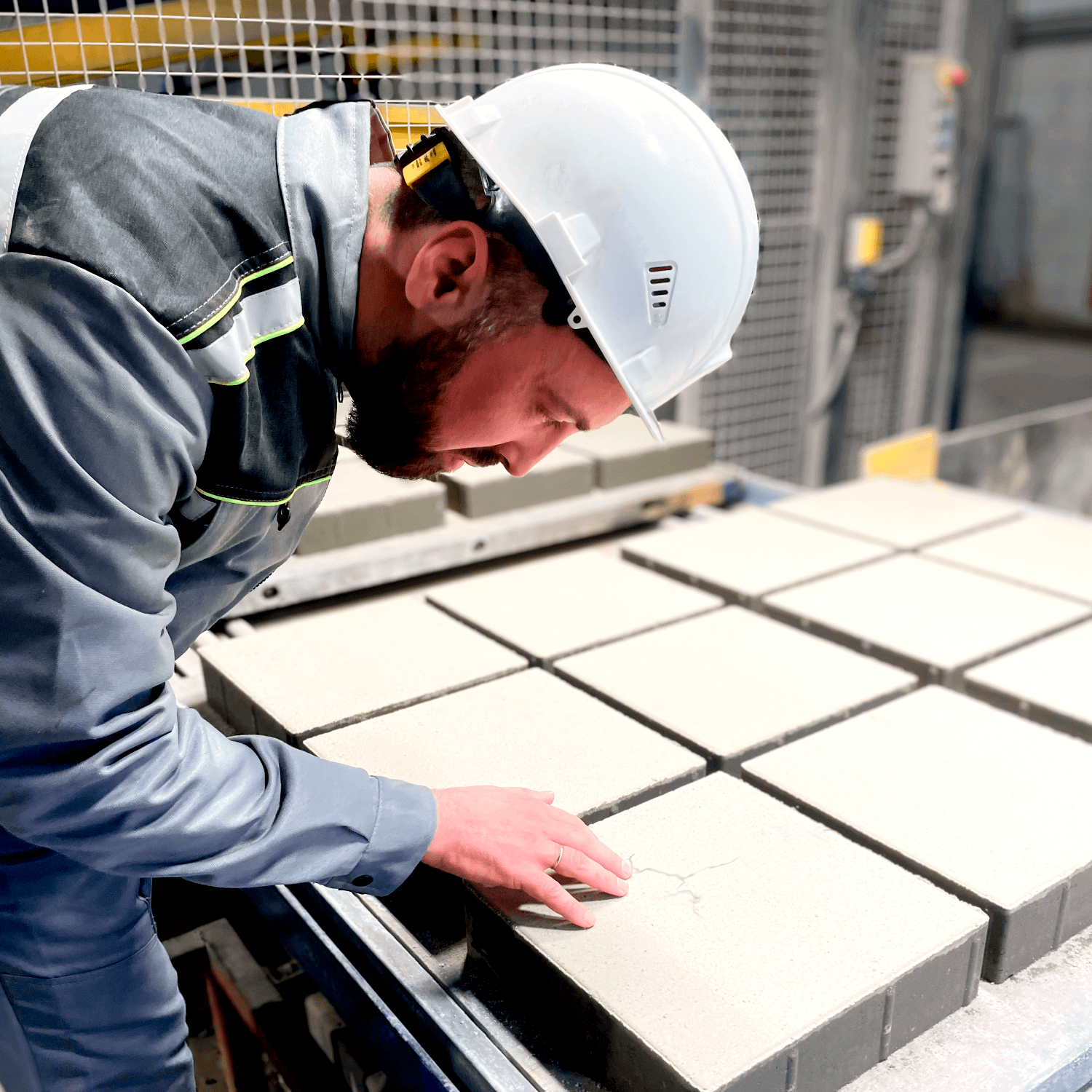 Первый шаг к автоматизации включает установку системы компьютерного зрения (CV), работающей на основе ИИ, способной проверять отформованные изделия на влажной стороне производства. Интегрированная система взвешивания, расположенная сразу после пресса, измеряет массу изделий, что позволяет вычислять среднюю плотность продукции.