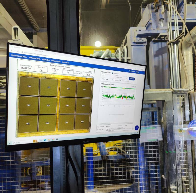 Благодаря автоматическому сплошному измерению всех изделий у оператора появляется инстумент с помощью которого можно точно контролировать высоту и менять параметры машины, чтобы формовать на нижней границе допуска по ГОСТ.